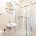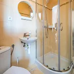 Здесь устлан паркетный пол. В апартаментах предусмотрен душ.